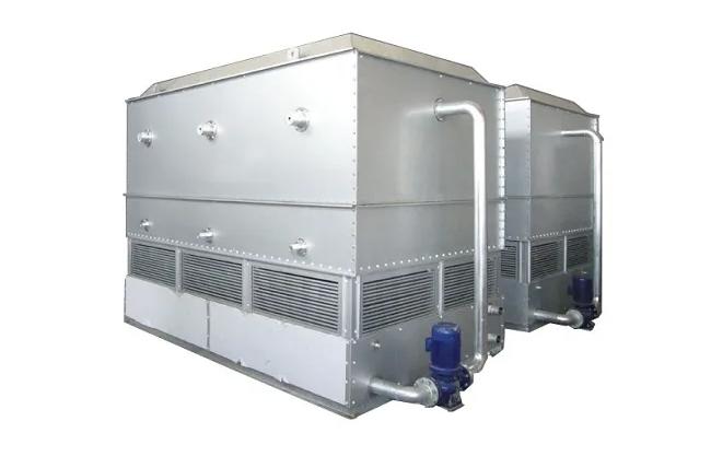 蒸发式冷凝器是用作冷库减温的一款换热设备,由风机、冷凝盘管、换热片、柜体等组件组成。